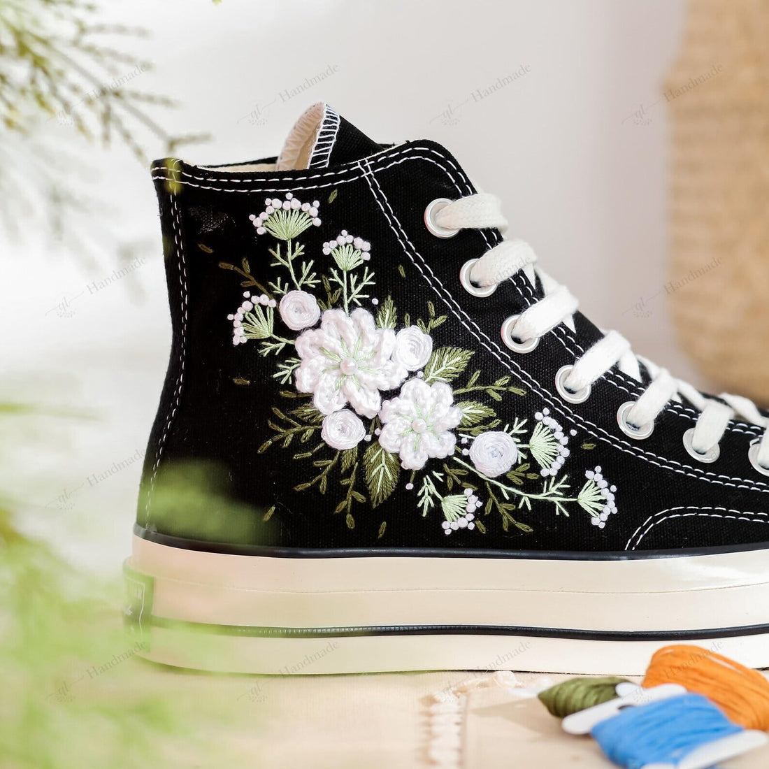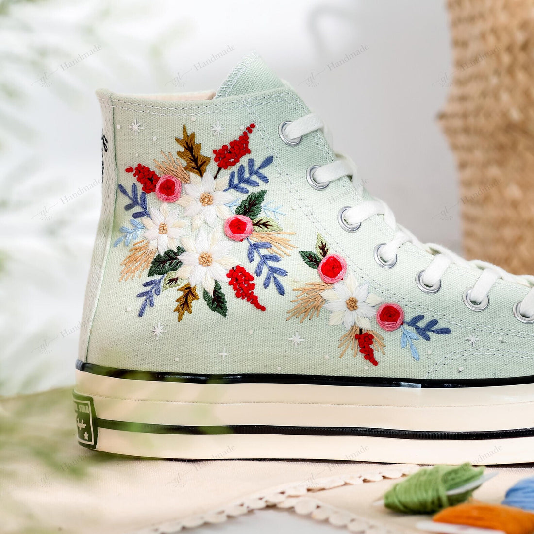 Wedding Boho Flowers Maroon & Orange tone Garden of Mushrooms Embroidery Converse Chuck Taylor High Top