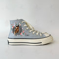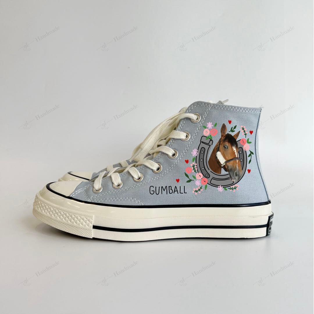 1 - 2 Horses With Flowers Embroidered & Painted Horseshoes High Top Converse