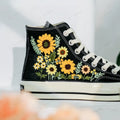 3D Sunflowers Wedding Shoes Hand-Embroidered Shoes High Top
