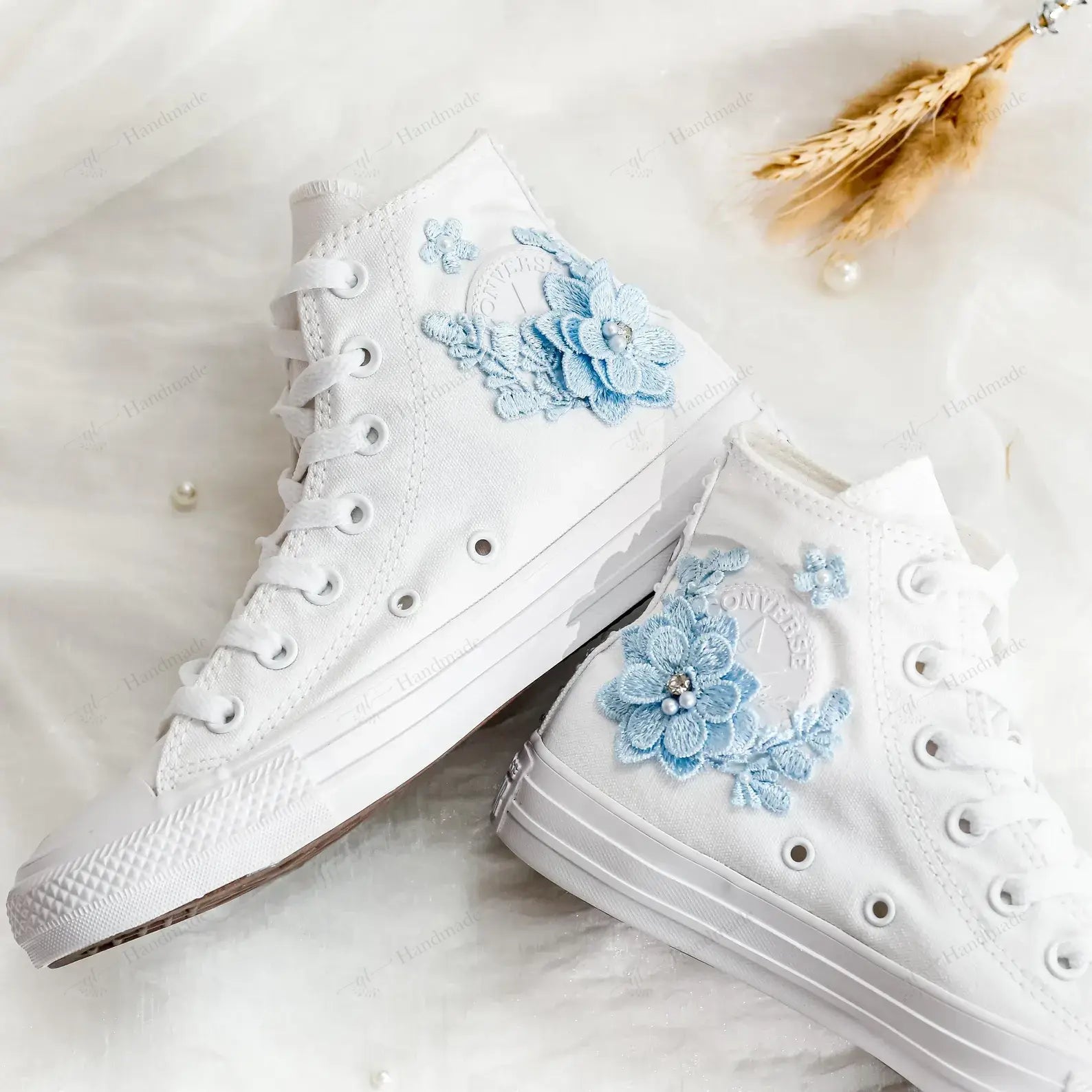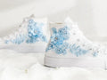 Baby Blue 3D Flowers Wedding Shoes Hand-Embroidered Shoes High Top
