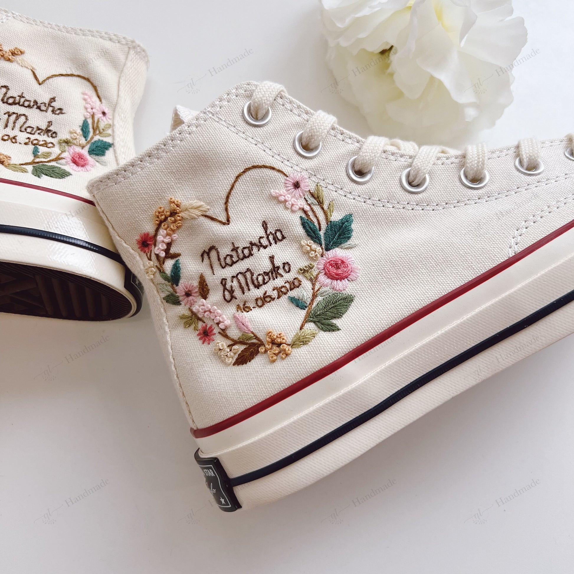 Custom Wedding Flowers Name Flowers Embroidery Wedding Converse Chuck Taylor High Top