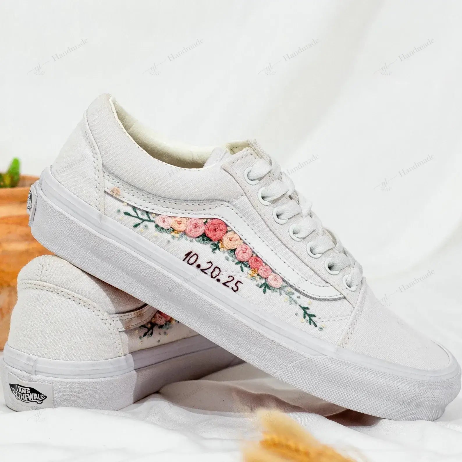 Pink Palette Roses With Pearl Lovely Flowers Wedding Flowers Hand-Embroidered White Vans Low Top